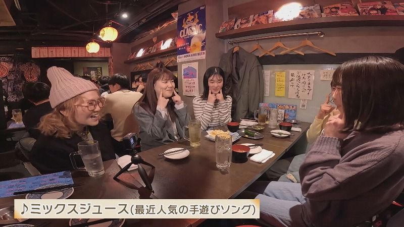 アキさん:「あれやってほしい。グーチョキパーでみたいな。本物のヤツ見たい」女性グループ:「“ミックスジュース”という手遊びが…」