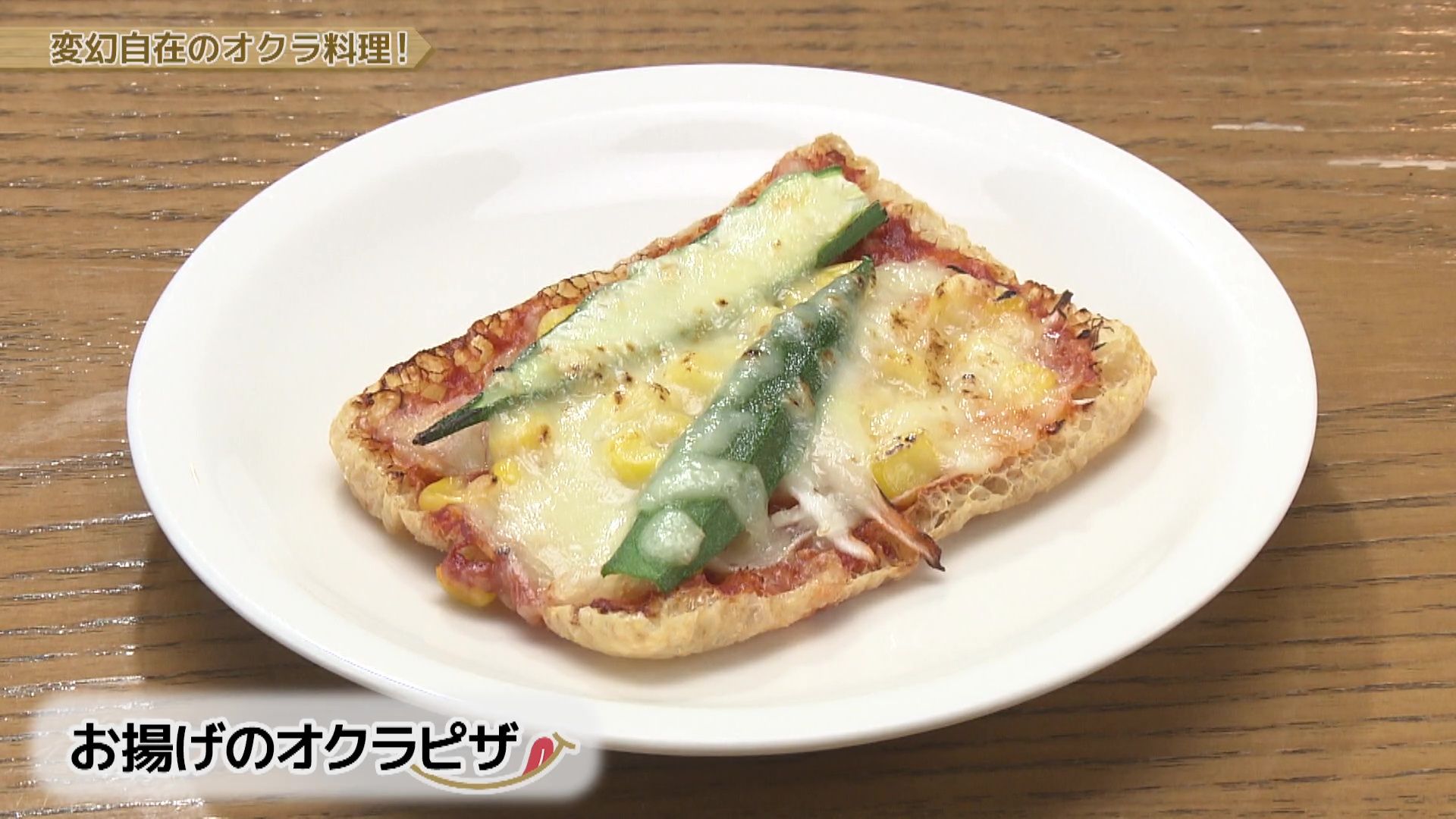 料理特徴…ピザ生地の代わりに油揚げを使い糖質を抑えて、オクラに含まれるβカロチンは脂溶性のためチーズとの相性抜群です。