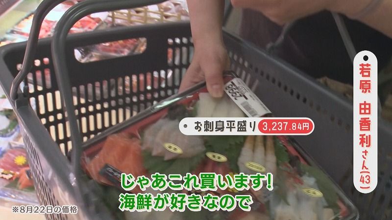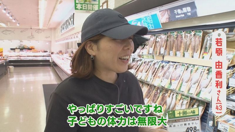 由香利さん:「何を買おうかな。え?本当にいいんですか?じゃあこれ買います!海鮮が好きなので」番組スタッフ:「旦那さんも?」由香利さん:「そうです、2人とも好きです」