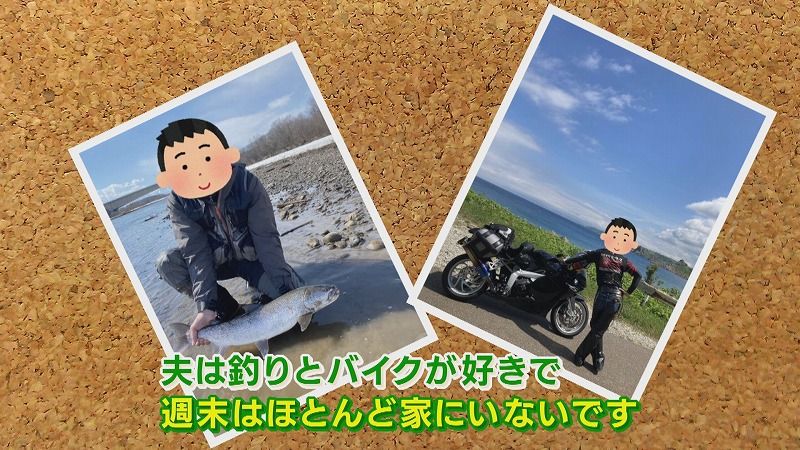 由香利さん:「夫は釣りとバイクが好きで、週末はほとんど家にいないです。私は鬼のインドアなので、“推し活”しているくらいです」
