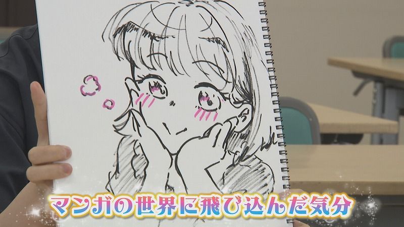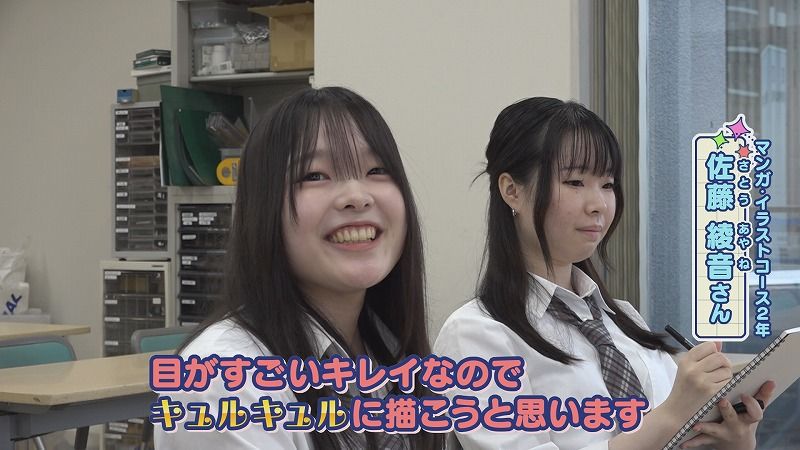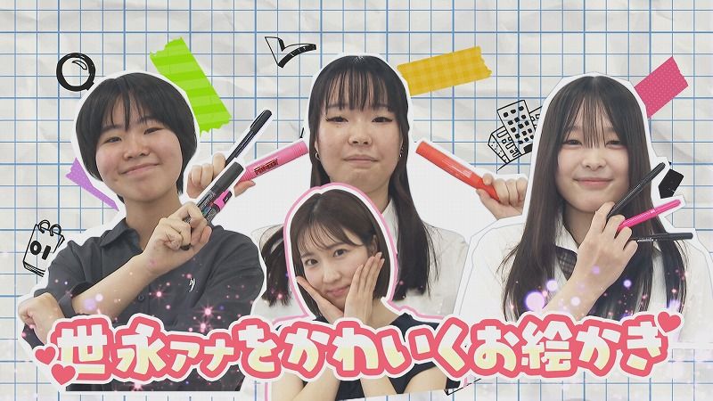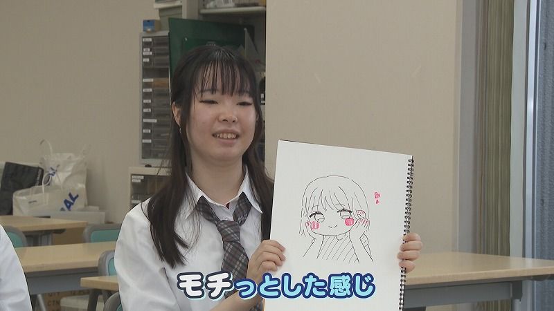 生徒:「目がすごくきれいなので、目をキュルキュルに描こうと思います」世永アナ:「キュルキュルだって」