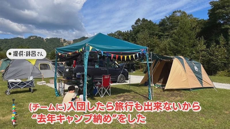 鉢呂さん:「チームに入団したら旅行も何もできないから、去年キャンプ収めをした。去年毎週のようにキャンプ行って。夏休みの間シーズン中は試合ばっかりなのでキャンプに行けない」