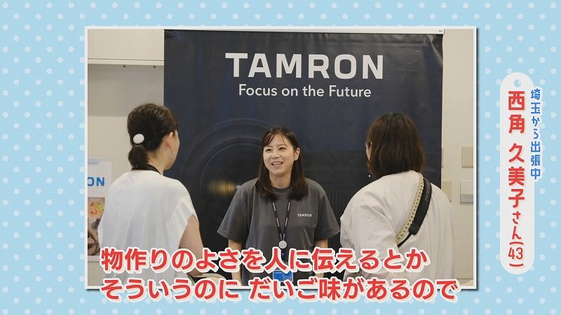 番組スタッフ:「どちらのメーカーさんなんですか?」久美子さん:「レンズのメーカーで“タムロン”っていう…」番組スタッフ:「タムロン!もちろん知っております」