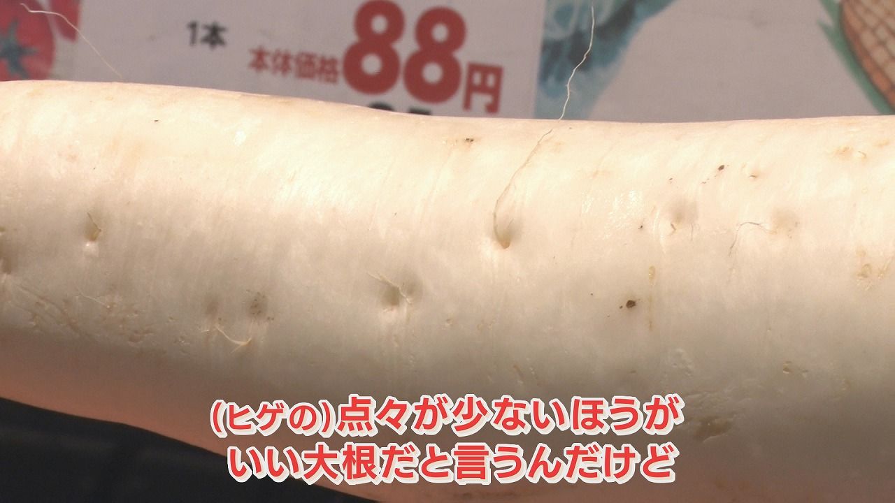 工藤さん:「こないだテレビで“ヒゲがあまりない大根”っていっていたのでヒゲの点々が少ない方がよい大根というんだけど」