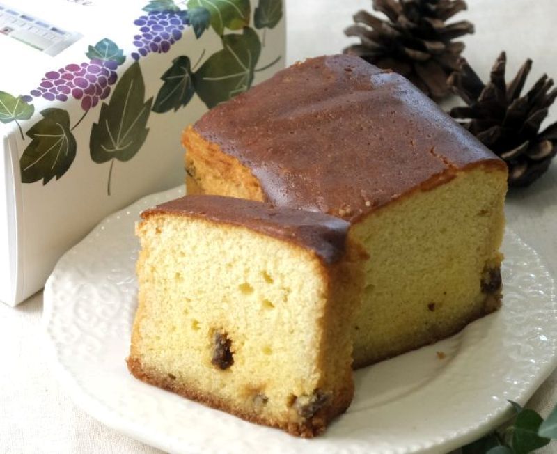 おかしの小松には30年以上のロングセラー〈ワインケーキ〉がある。白ワインのシロップに浸したバターケーキを、ブランデーと白ワインを加えた砂糖の蜜でコーティング。時が経つほどコクが増し、ぜいたくな味わいが楽しめる。