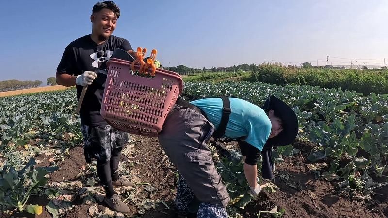作業中は常に中腰、さらに1株300グラム程あるブロッコリーを次々にカゴに乗せていくため、体にはかなりの負担がかかります。