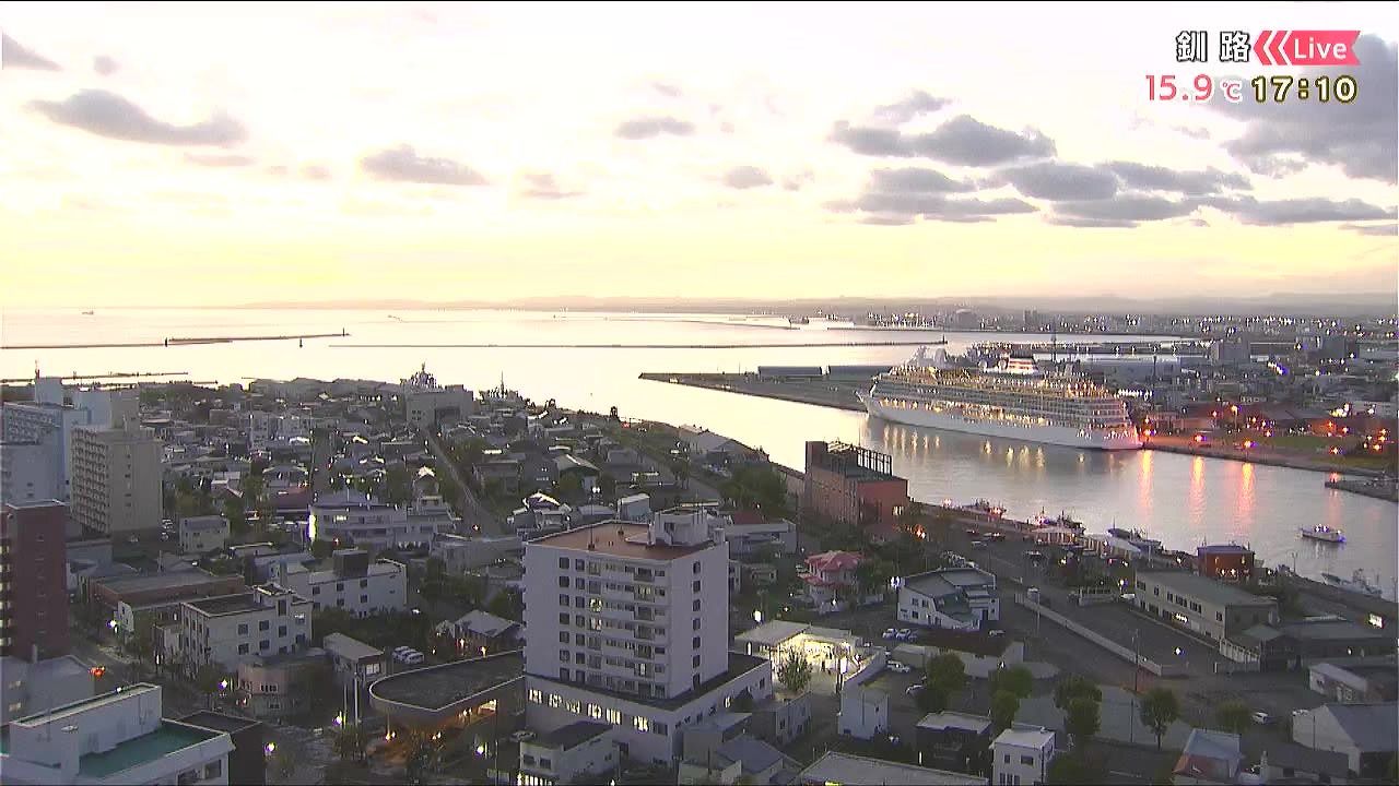 釧路です。停泊しているクルーズ船は「飛鳥Ⅲ」です。今夜9時に仙台に向けて出港するそうです。