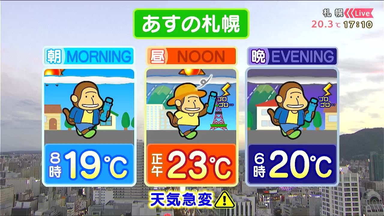 あす10月1日(水)の札幌です!朝昼晩の天気をもんすけでお伝えします!