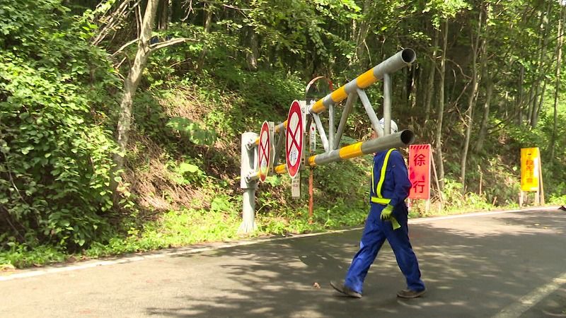作業員の「開けます」の声とともにゲートが開き、11か月間続いた通行止めが解除されました。