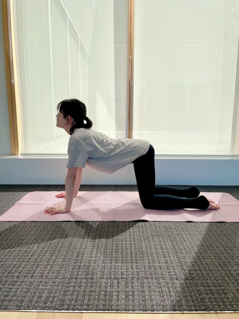 冷え性の改善や肩こりの緩和にも効果的です。猫のように背骨を滑らかに動かしてみましょう!