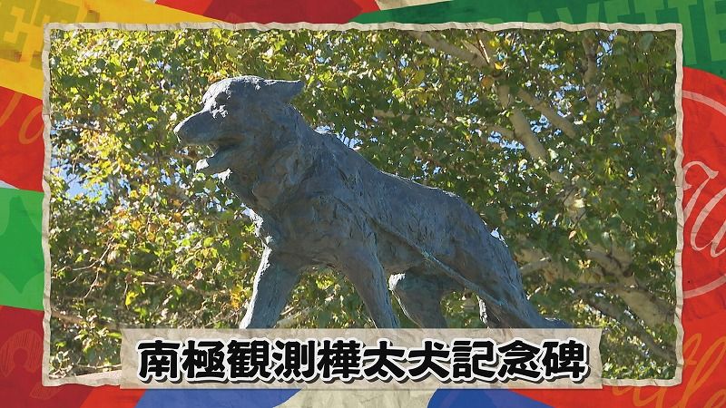 南極観測で奇跡の生還を果たした、タロとジロをたたえる銅像なんだよ~!
