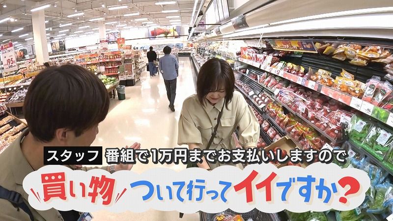 番組スタッフ:「番組で1万円までお支払いしますので買い物ついて行ってイイですか?」