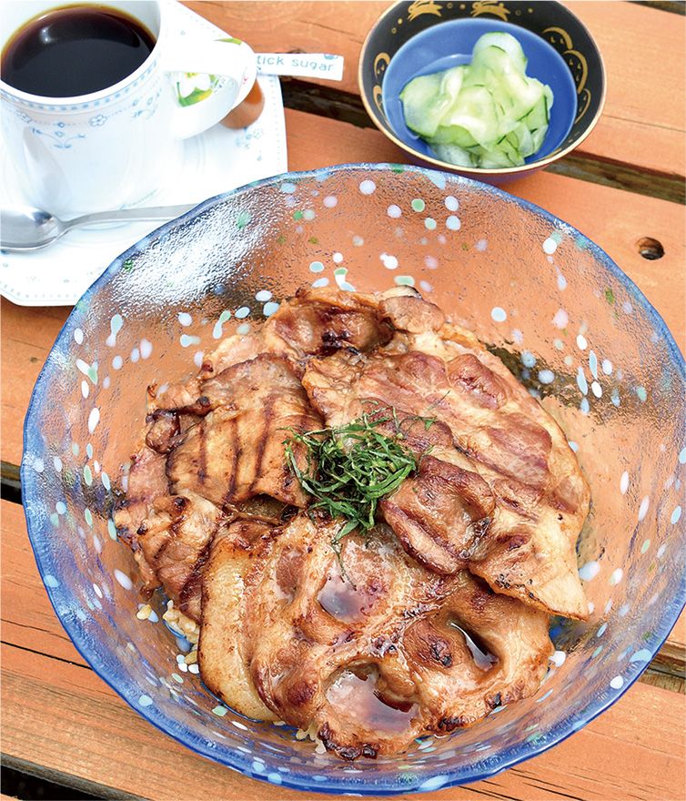 道産豚肩ロースの生肉を使う「スペシャル豚丼コーヒーセット」のタレは、