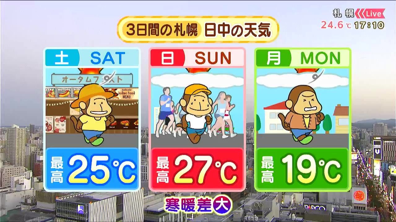 3日間の札幌です! 土日月の天気をもんすけでお伝えします!