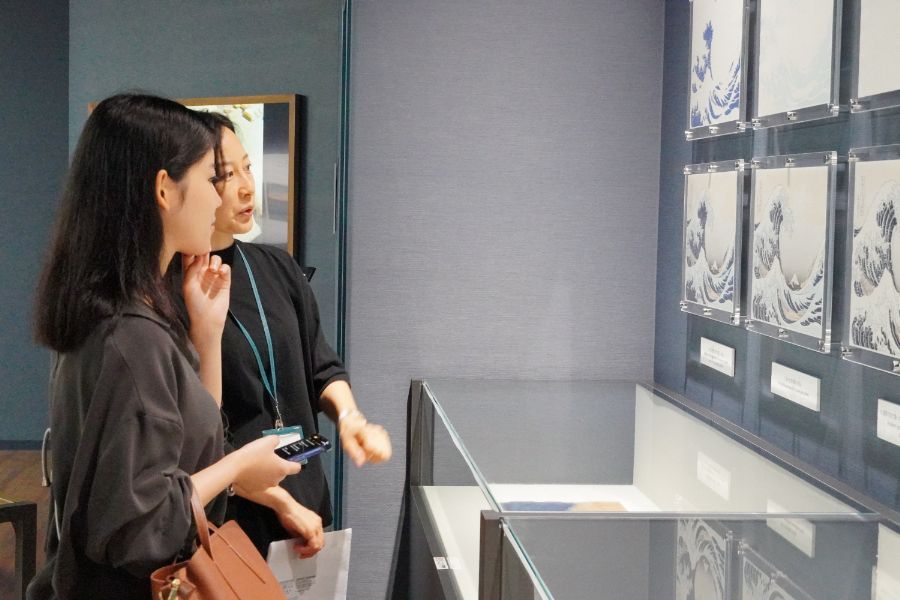 壁一面を彩る巨大な浮世絵は、来館者をまるごと作品世界に包み込みます。