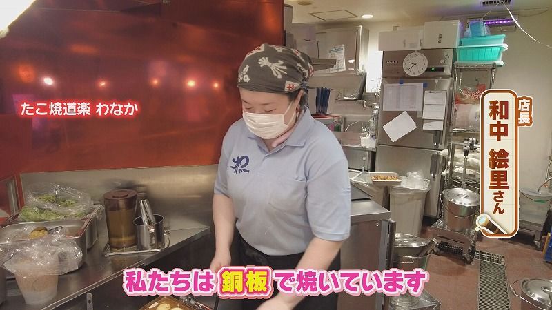 たこ焼道楽 わなか スタッフ:「私たちは銅板で焼いています。一般的には鉄板が多いと言われるんですけど、銅板って熱伝導率が高いので表面が薄くカリっと中はトロトロに仕上がります」