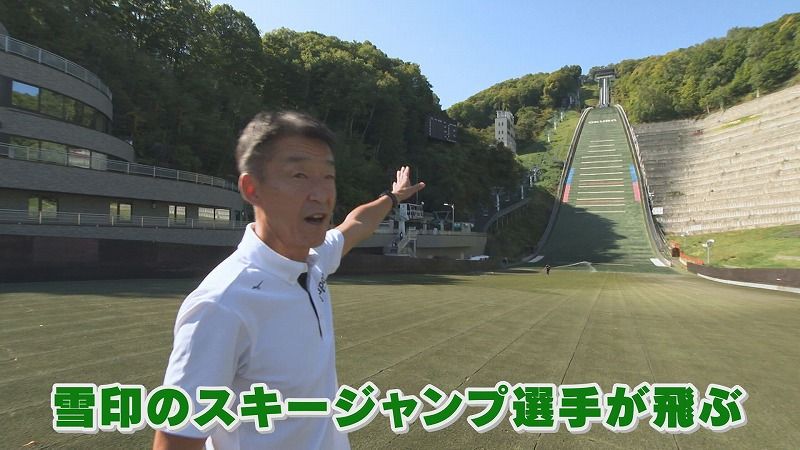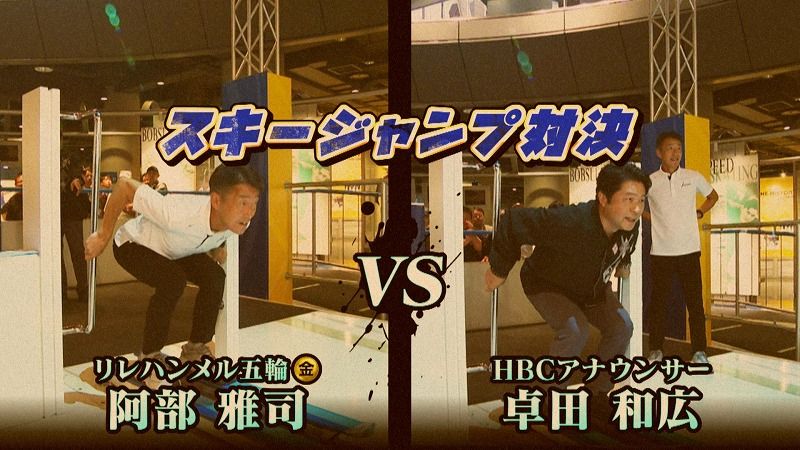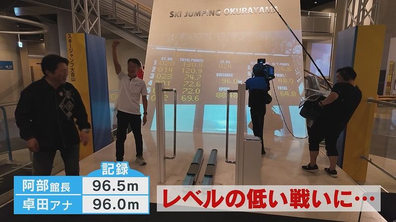 シミュレーター「スキージャンプ大倉山」で阿部さんと卓田アナがスキージャンプ対決!