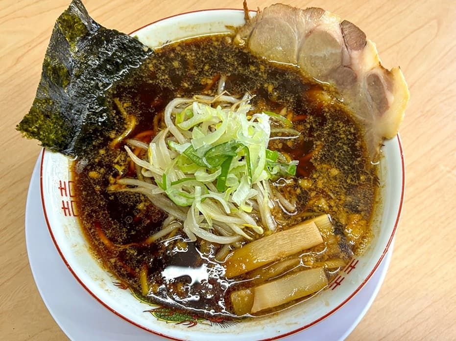 漆黒のスープというインパクトのある見た目の醤油ラーメン。