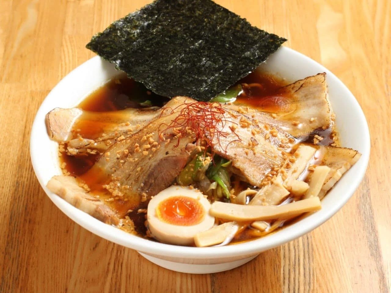 じっくり煮込んだバラ肉のチャーシューと半熟の煮玉子が絶品。揚げニンニクが食欲をそそります。