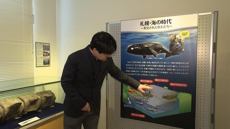 札幌市博物館活動センターの田中嘉寛学芸員は「かっこいいですね。サッポロクジラの頭は2メートル20センチある。頬から頬の長さが化石として残っているので全長12.7メートルという推測ができた」と話します。