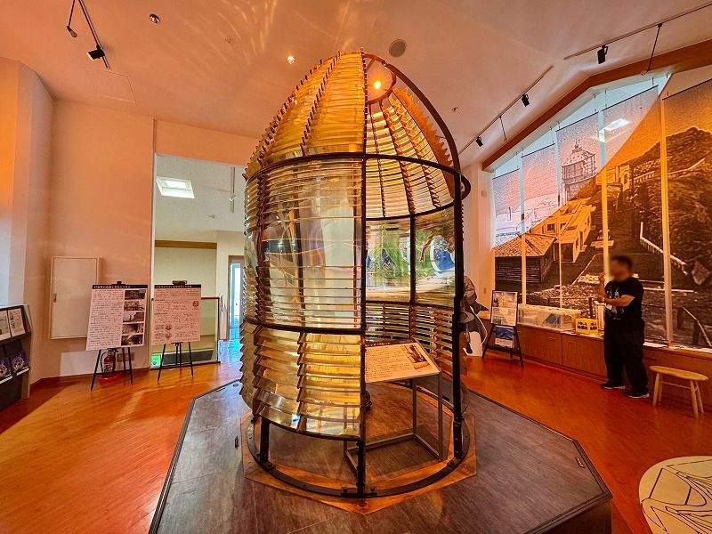 最後に、神威岬駐車場すぐ隣のカムイ番屋内にある「第一等不動レンズ展示室」をご紹介します。ここで展示されている巨大なレンズは、大正12年からから37年間にわたって実際に積丹の海を照らすのに使われていたものです。灯台の更新にともない引退した後、大阪で展示・保管され、つい最近の令和4年に積丹町に里帰りしてきました。 当時の精巧な技術と灯台の歴史を肌で感じられる展示です。