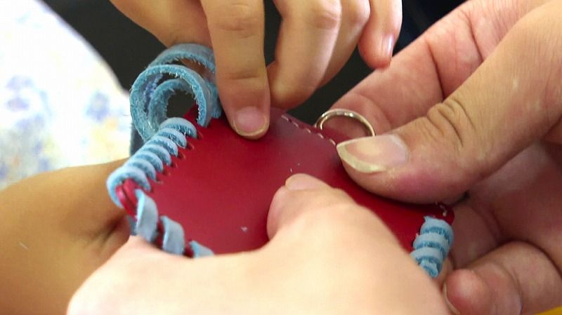 豊沼小学校の児童たちが作っているのはもちろん『革のパスケース』です。