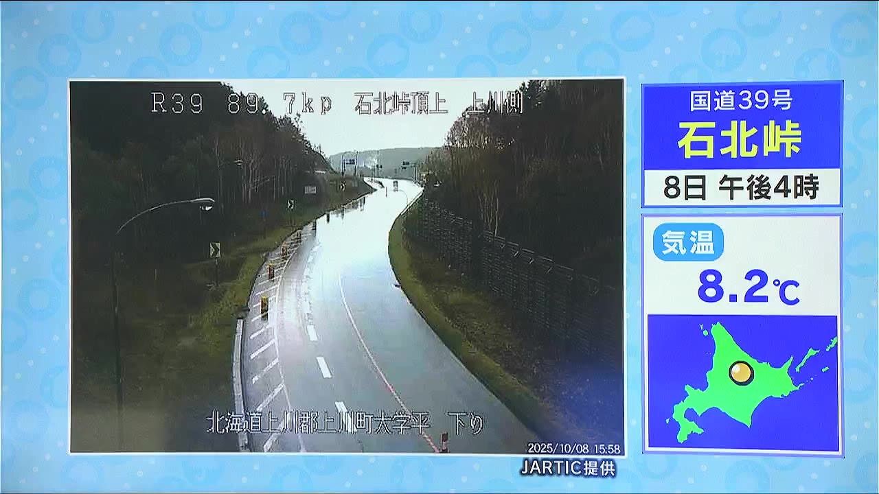 きょう8日(水)は気温は高めでしたが、広い範囲で雨が降りました。こちらは、石北峠の道路画像です。路面が雨で濡れていますね。