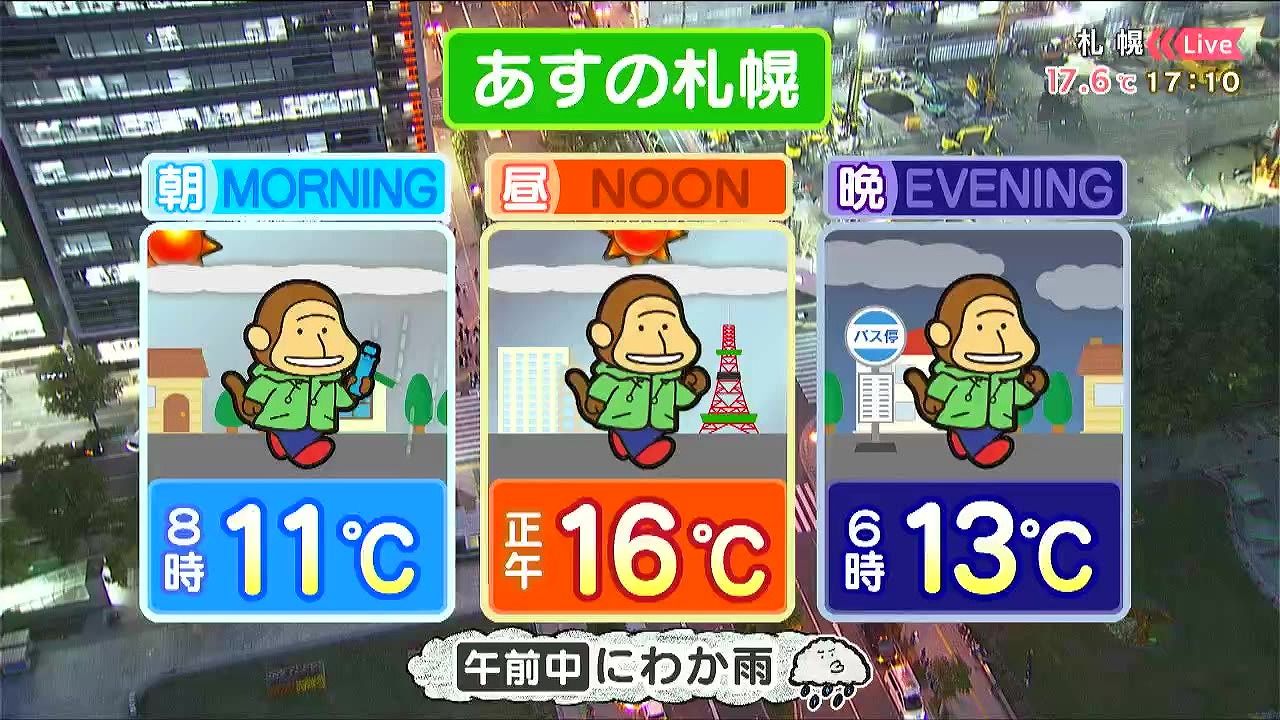 あす9日(木)の札幌です!朝昼晩の天気をもんすけでお伝えします!