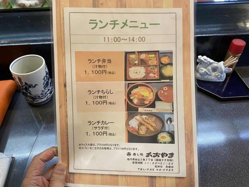 3軒目にご紹介するランチがお得なお寿司屋さんは、永山3条3丁目にある「寿し処 あおやま」です。