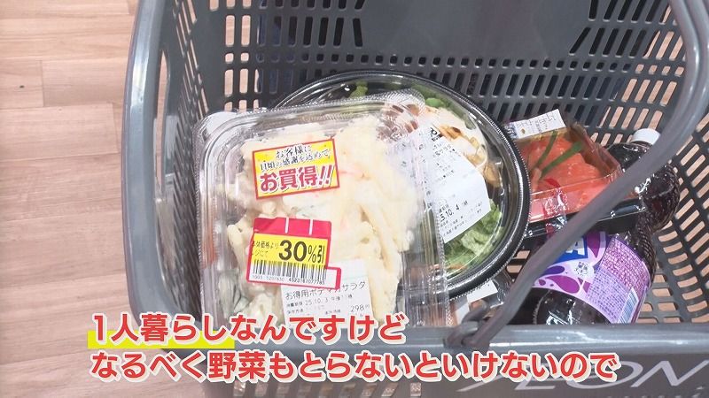 番組スタッフ:「買い物カゴの中身を見せてもらう企画をしていて、どんなものを買ったか教えてもらっていいですか?」