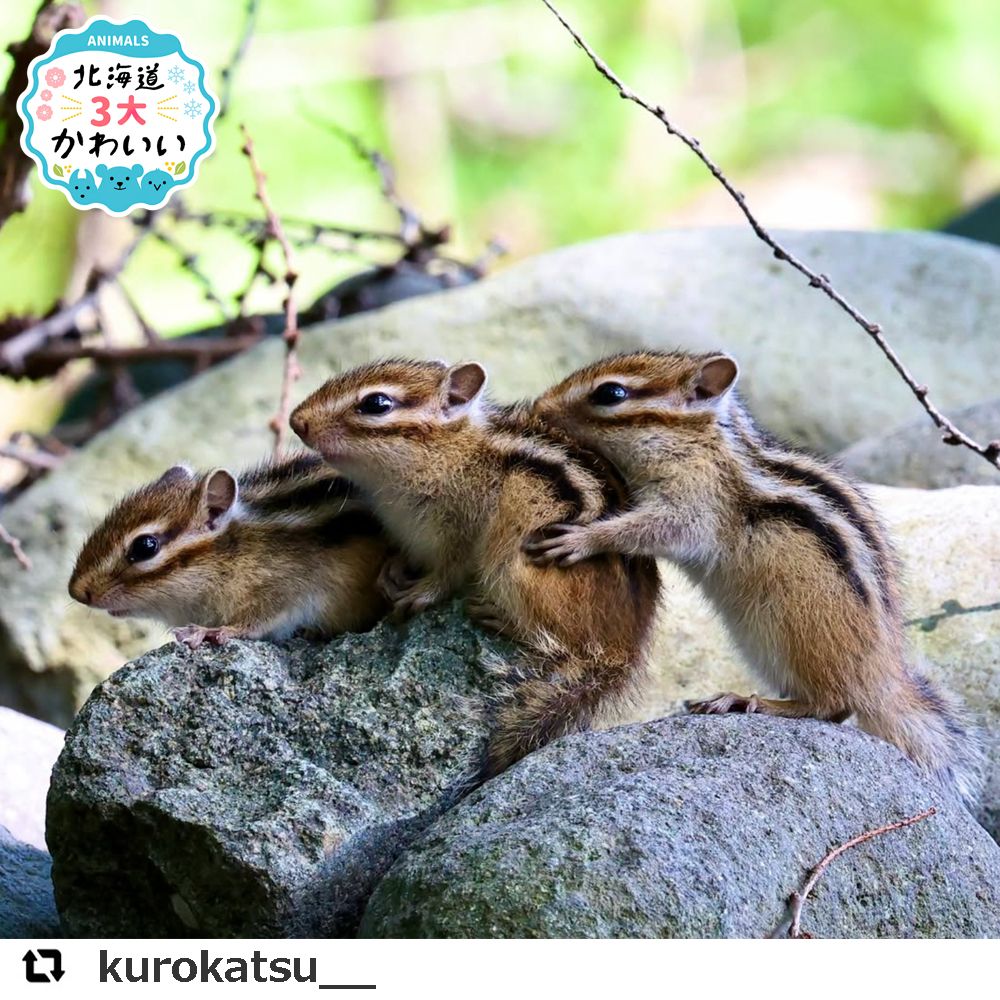 この春に生まれた、エゾシマリスの、かわいいきょうだいですねー。