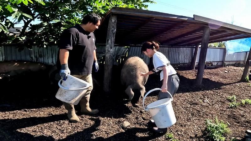 「いかに早く、多くのブタたちをお世話できるかが大事!」と師匠に教えていただきました。