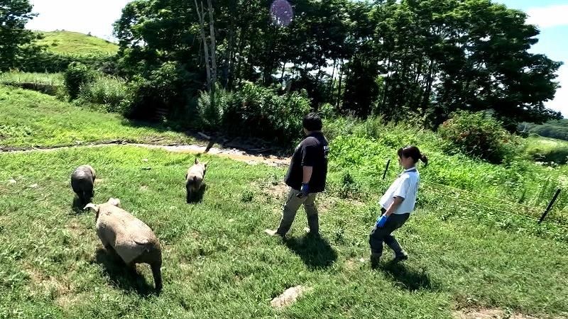 たくさん動いて筋肉がついた師匠の育てたブタたちは、身が引き締まっておいしいお肉に!