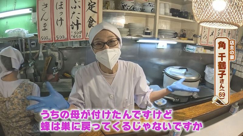 番組スタッフ:「なぜ蜂屋?」千鶴子さん:「うちの母が付けたんですけど、蜂は巣に戻ってくるじゃないですか。だからお客様もこのお店に戻って来てくれるように」