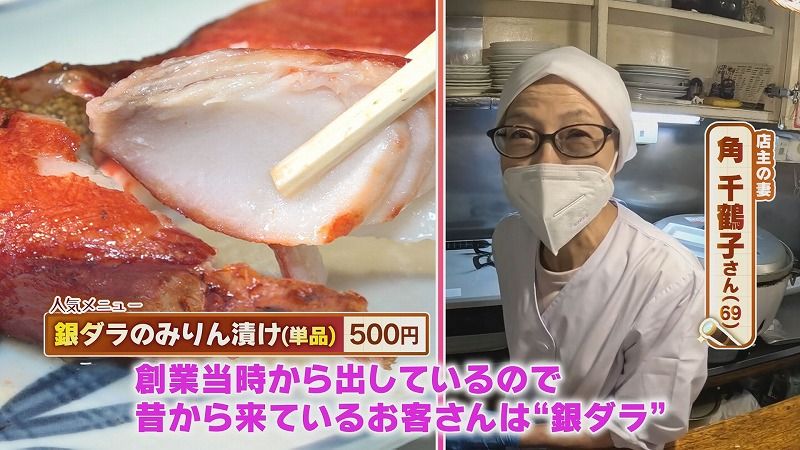 千鶴子さん:「銀ダラのみりん漬けです。人気あります。創業当時から出しているので昔から来ているお客さんは銀ダラ」
