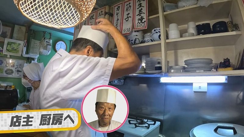 千鶴子さんの夫、富雄さんが厨房に入ります。