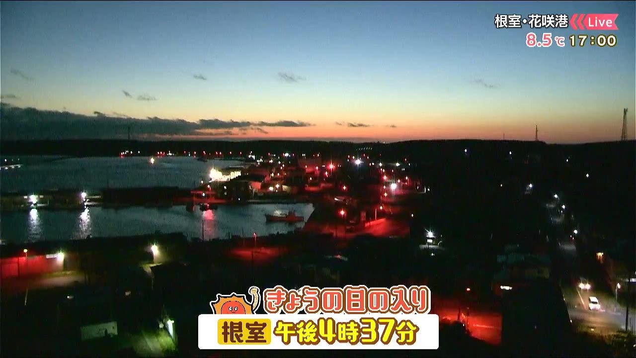 根室の今日の日の入りは午後4時37分でした。夕暮れ時の事故に気を付けましょう。