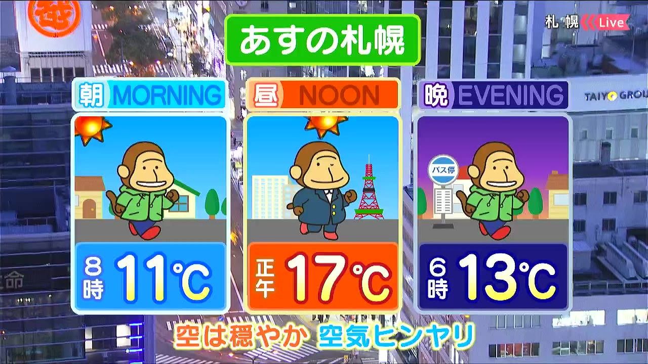 あす15日(水)の札幌です!朝昼晩の天気をもんすけでお伝えします!