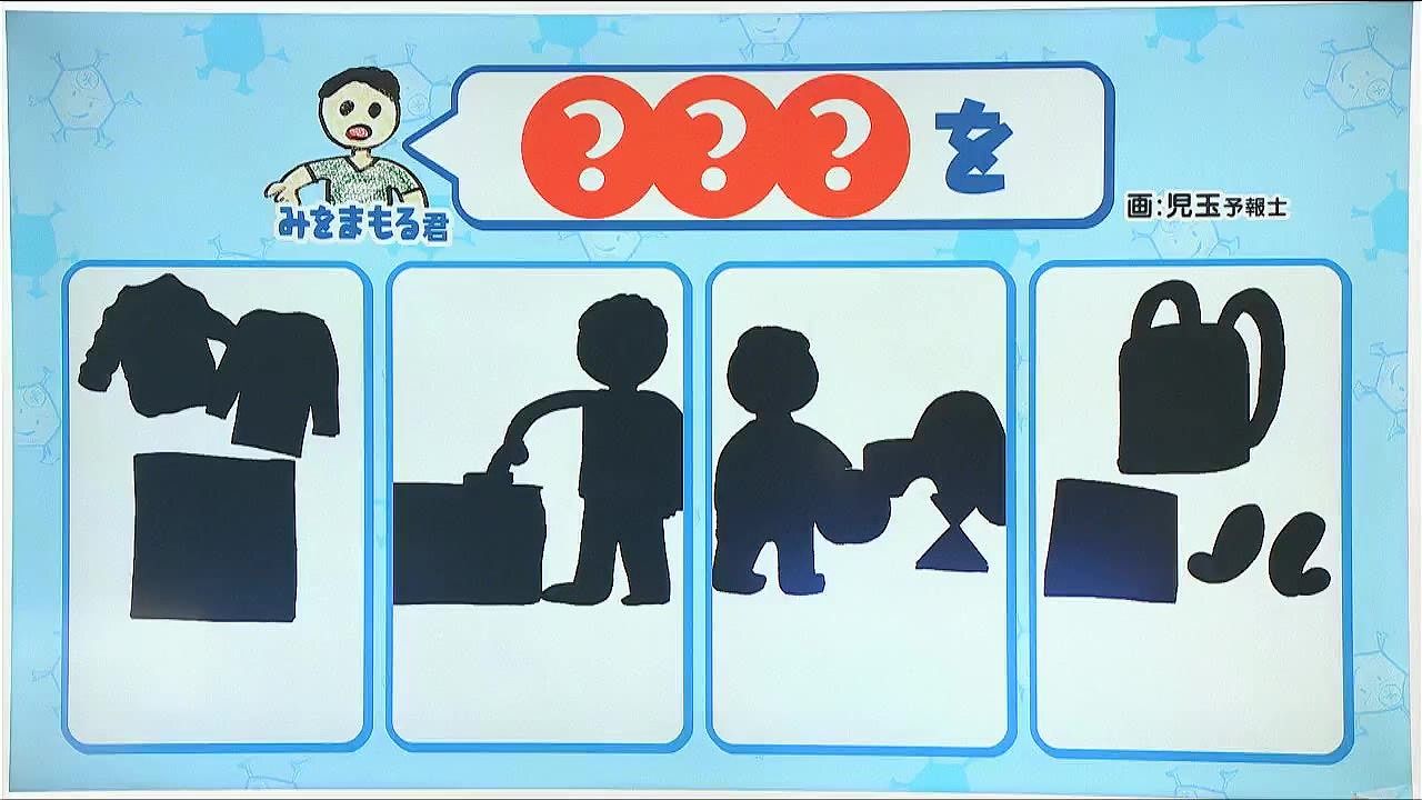 暮らす日ごろからの備えを教えてくれる「みをまもる君」。シルエットになっていて、「〇〇〇を」と言ってます。この丸の中に入る3文字の言葉、なんでしょう?