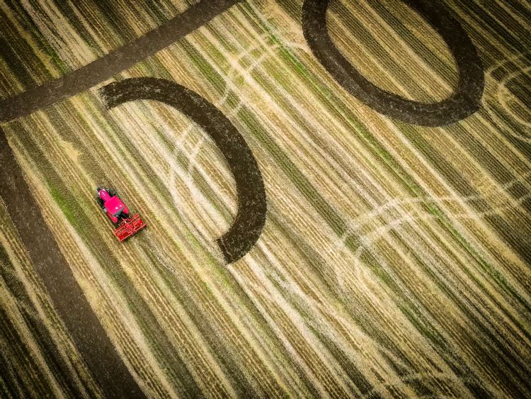 まつり会場のひとつ、「三浦農場」の収穫が終わった小麦畑では、町内の小学生が描いた絵をもとにして、GPSを使った自動運転トラクターが、巨大アートを制作しました。