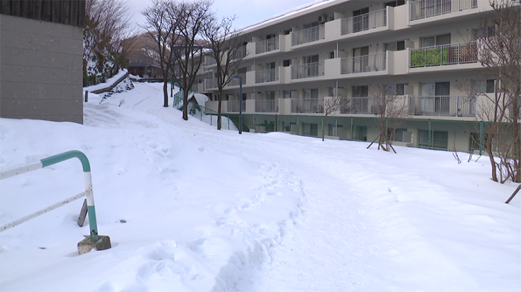 札幌の雪深い冬。昼間の住宅地。自宅のすぐ近く。