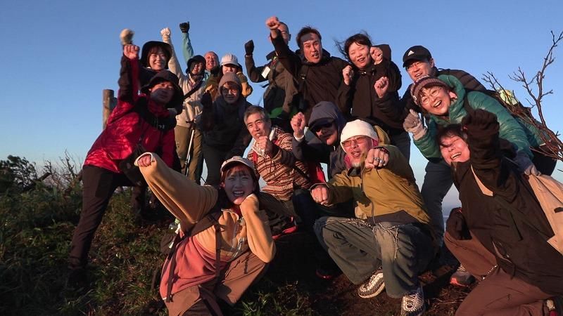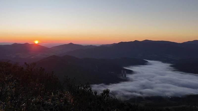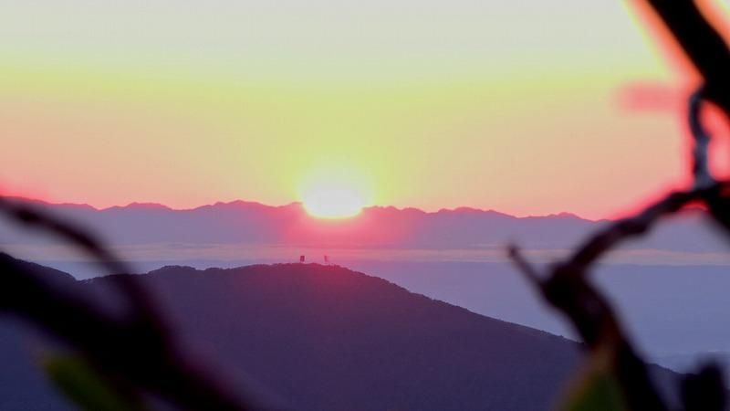 SitakkeTV朝日がまぶしい、標高1000メートル超の山頂。
