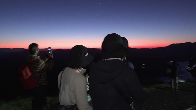 登山道に入るのは、夜が明けてから。