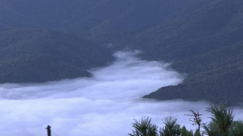 山の間を埋めつくす白い雲。ここが天空になったかのような幻想的な風景です。