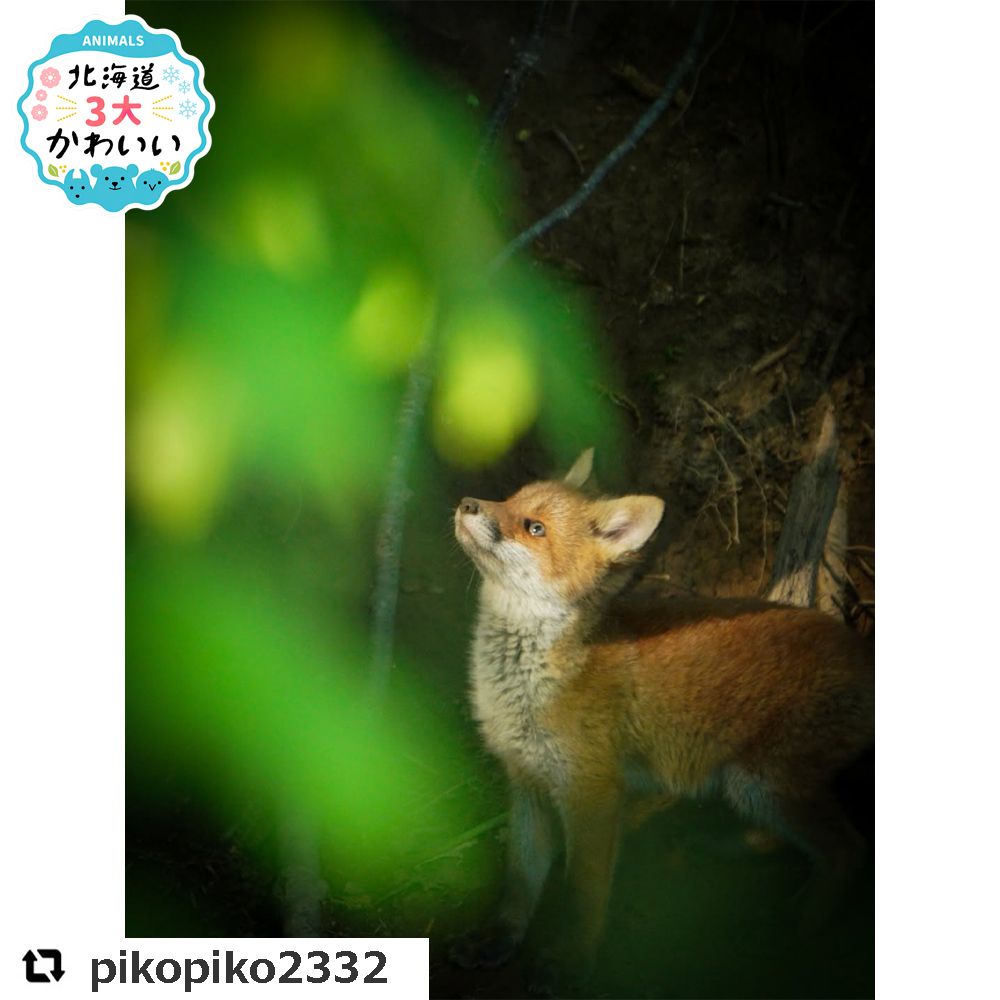 何を見つめているのか?それは木に隠れて見えないのか、それとも見つめる先はもっとはるか遠くにあるのかはわからないのですが、もしかしたら、ひとり立ちしたばかりの子ギツネが、何か〝大きな決心〟をしたかのようなトキメキを感じさせてくれる、とってもステキなお写真ですね。