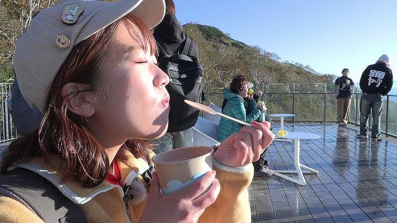 下山後、雲海テラスであたたかいクラムチャウダーをいただきました。