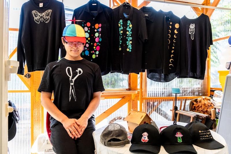 昨年一旦地元の函館へ戻り、現在は技術職に就きながら副業として刺繍作品を制作。それらは弁天町の『小田島水産』で販売されている。