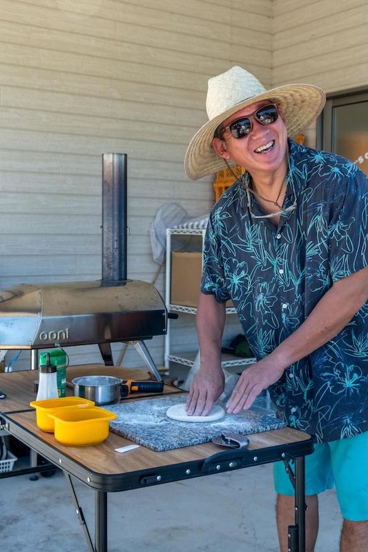 ここに出入りしているのは7〜8人のメンバーで、行われているのはオールシーズン通してのポータブルサウナ活動、元プロの料理人が先頭に立ってつくる窯焼きピザづくりや近隣から調達した食材をつかったBBQ、近年徐々に注目され始めている雪遊び「雪板」の制作やワークショップなど。
