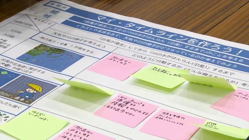 6年生の子どもたちが作っているのは、「マイ・タイムライン」と呼ばれる防災時の1人ひとりの行動計画です。