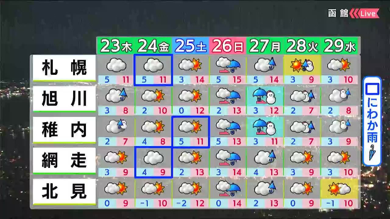 あす23日(木)の札幌です!朝昼晩の天気をもんすけでお伝えします!